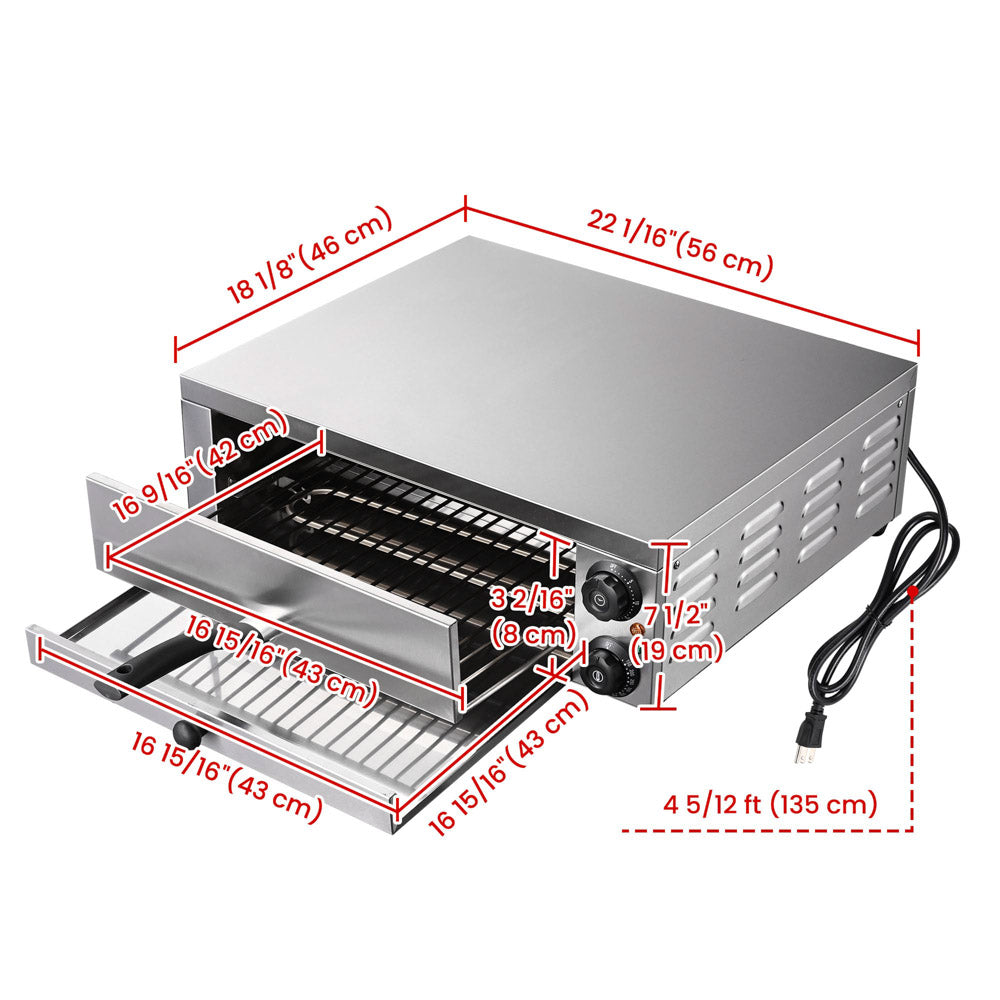 - Upper & lower heating tubes reach high temperature quickly, allowing the pizza to be heated evenly from top to bottom