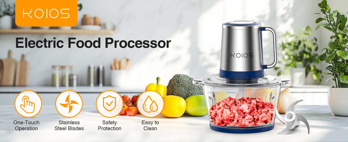 KOIOS Electric Food Processor, 2-Speed Food Chopper Meat Grinder with Glass Bowl