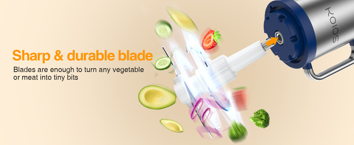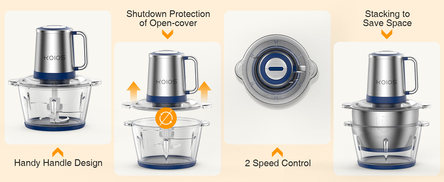 KOIOS AMJ-106 food processor single blade single bowl blue, 300W, 120V/60Hz, with a set of four blades