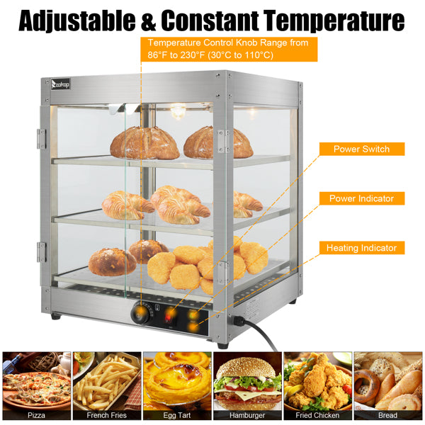 - Adjustable Temperature Control: Set and maintain temperatures from 86°F to 185°F (30°C to 85°C) for optimal food freshness without overheating.