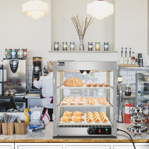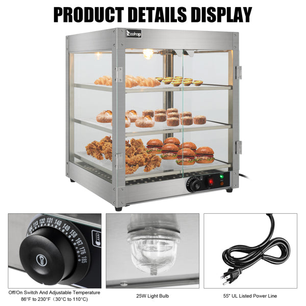 - 3-Tier Display: Includes three removable shelves, offering flexible food storage and easy cleaning.